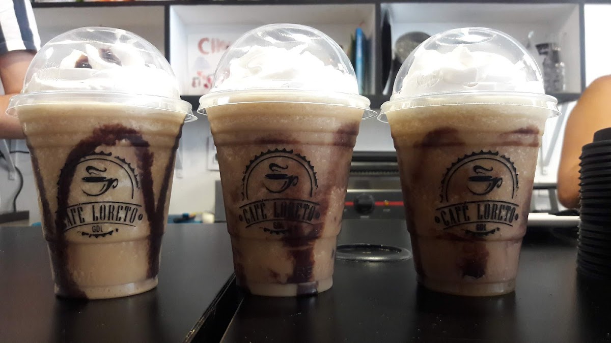 Deliciosa bebida frappé sabor café, preparada con leche deslactosada, endulzado con azúcar y decorado con crema batida y chocolate liquido.